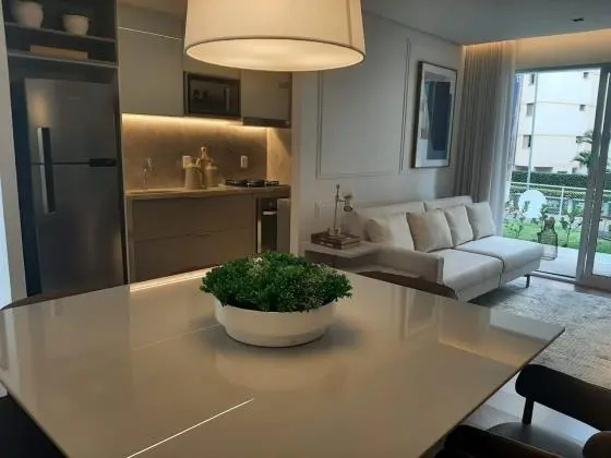 Ao entrar no condomínio, você poderá perceber imediatamente a integração com a natureza e o bom gosto na arquitetura e acabamento das torres. Os apartamentos possuem uma ampla sala que se conecta com uma varanda espaçosa, perfeita para admirar o pôr do sol. A suíte principal e o primeiro quarto possuem detalhes tanto no piso quanto na altura do teto que demonstram a qualidade e o acabamento do lugar.