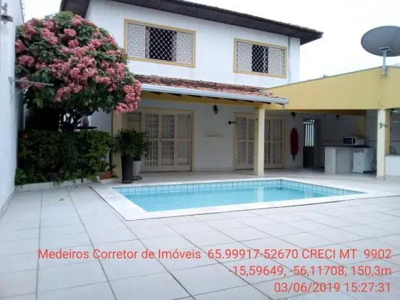 VENDO!!! Uma casa com um terreno lateral no Jardim Cuiabá, próximo dos hospitais, clinicas, farmácias, mercados, consultórios médicos, do shopping estação, 03 quadras da av. Miguel Sutil, ótima localização, para comercio em geral. Terreno 420 M² com uma Área construída de 330.69 M² dois pisos, mais um terreno lateral de 12x35 (420 M²) com acesso separado, todo gramado com canil, totalizando 840 M². Sendo: 04 suítes com moveis planejados, banheiros sociais, 04 salas, bar, cozinha montada, dispensa, lavanderia, área de serviço, churrasqueira, piscina de azulejo, edícula nos fundos com armários, dispensa, banheiro, dependência com banheiro para empregada, corredores laterais com saída, jardinagem, toda murada, com cerca elétrica e central de alarme com câmeras de segurança, interfone, estrutura toda na laje. Garagem para 4 carros, portão eletrônico.
