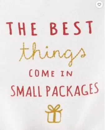 Frase : " As melhores coisas vem em pequenos pacotes " com glitter