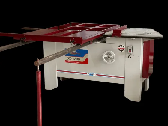 Serra esquadrejadeira, marca Maksiwa, usada, revisada, pintada, rolamentos e correias novos, corte de 1800mm, motor trifásico, com mesa móvel extendida