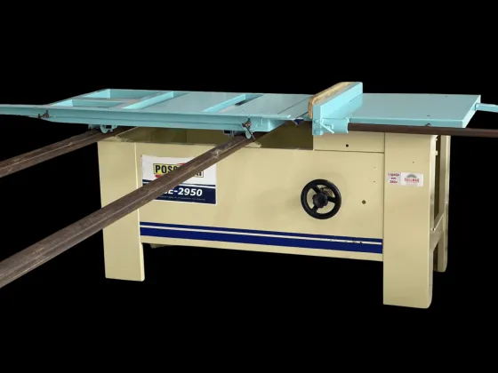 Serra esquadrejadeira, marca Possamai, modelo SCE2950, com prolongador de mesa móvel traseiro, corte de 3000mm, corte reto, motor de 3cv trifásico, pintada e revisada, garantia de 90dd total