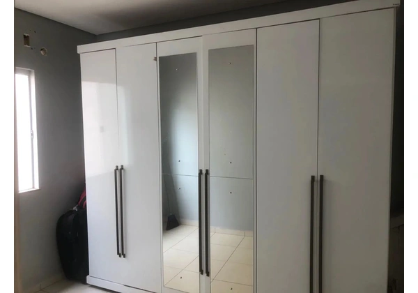 Lindo Guarda-Roupa de Casal branco com portas de espelho, ideal para quem busca um toque de elegância e praticidade no quarto. Com amplo espaço interno para organizar suas roupas e pertences.