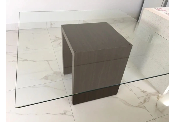 Mesa de jantar moderna em vidro temperado 10 mm com base de madeira embuia