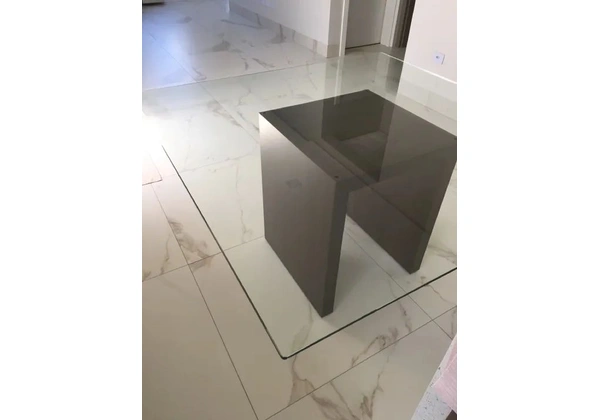 Mesa de jantar moderna em vidro temperado 10 mm com base de embuia - R$950