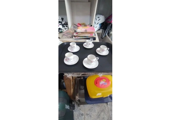 5 xícaras com borda dourada - R$40