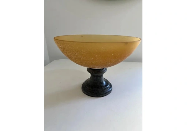 Fruteira de vidro com pé de ferro 21x30 cms Antiga(crédito, débito, Pix e PicPay)