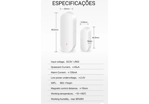 Modelo: Sensor magnético - Sem fio Wi-fi