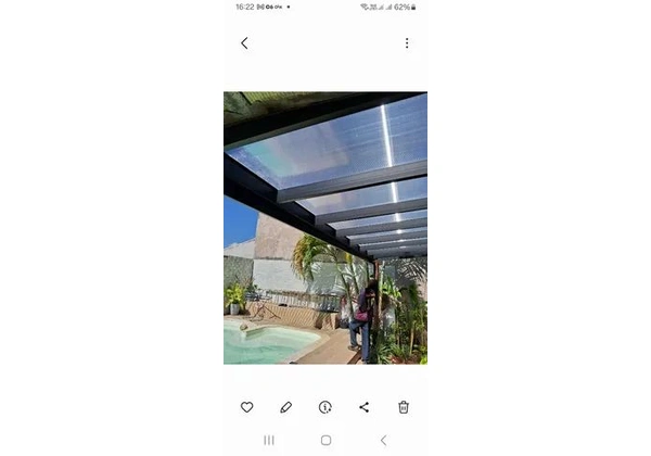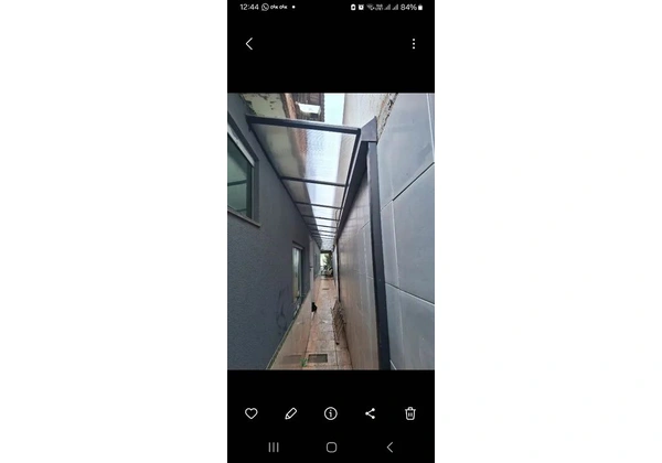 Estrutura metálica com cobertura em policarbonato, com calha estrutural