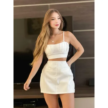 Conjunto Suelen Short Saia e Cropped Alfaiataria