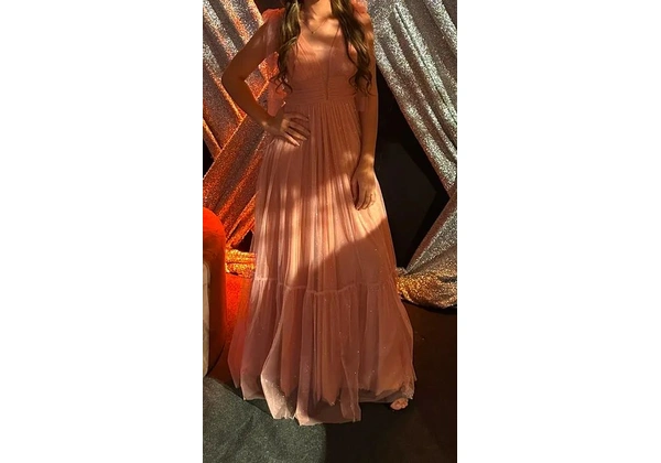 Vestido que veste até um M, vestido longo com brilhos com detalhes na cintura e nos ombros! Usado apenas uma vez em ótimas condições sem nenhum rasgo